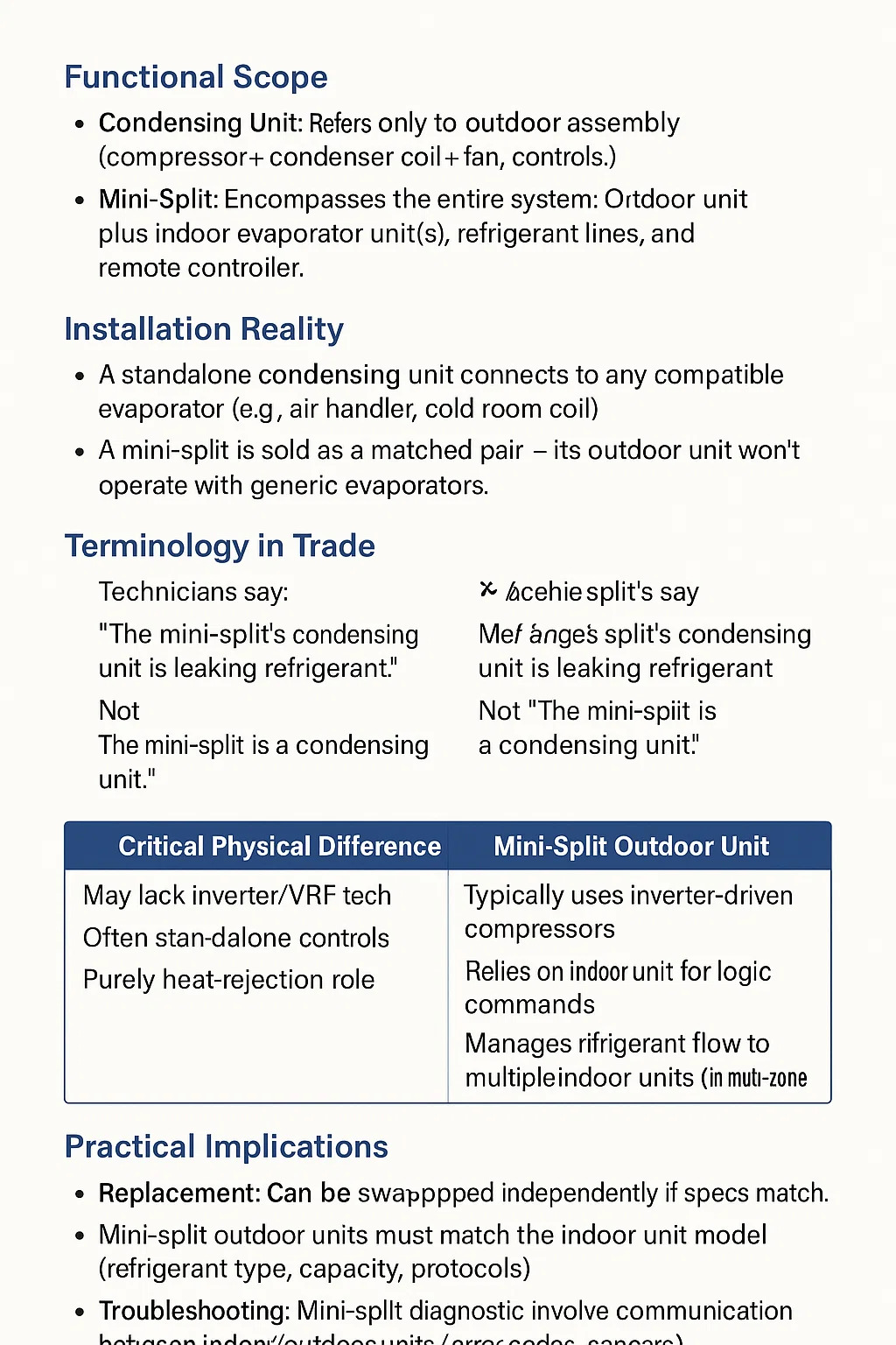 Kondenzační jednotka: odkazuje pouze na venkovní sestavu (ovládací prvky ventilátoru cívky kompresoru).